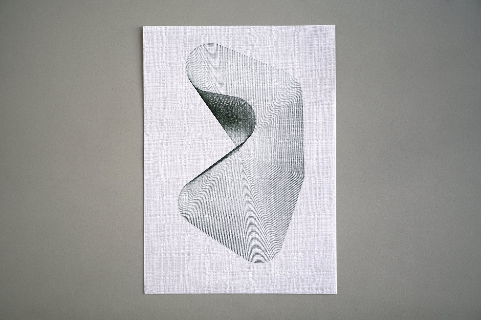Using the inspiration of geometric concepts and tension, this algorithm creates thick black contours in different sections (5 points and contoured). The resulting plot is produced using a fine olive ink brush on 300gsm vellum paper, measuring 210 x 290mm.