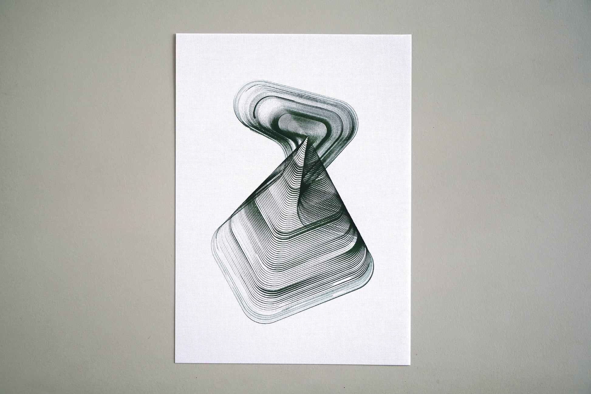 This design draws inspiration from the tension found in rubber band algorithms and how it parallels the daily pulls and strains we face in life. Created using fine olive ink on high-quality, textured paper, measuring 210 x 290mm and weighing 200gsm.